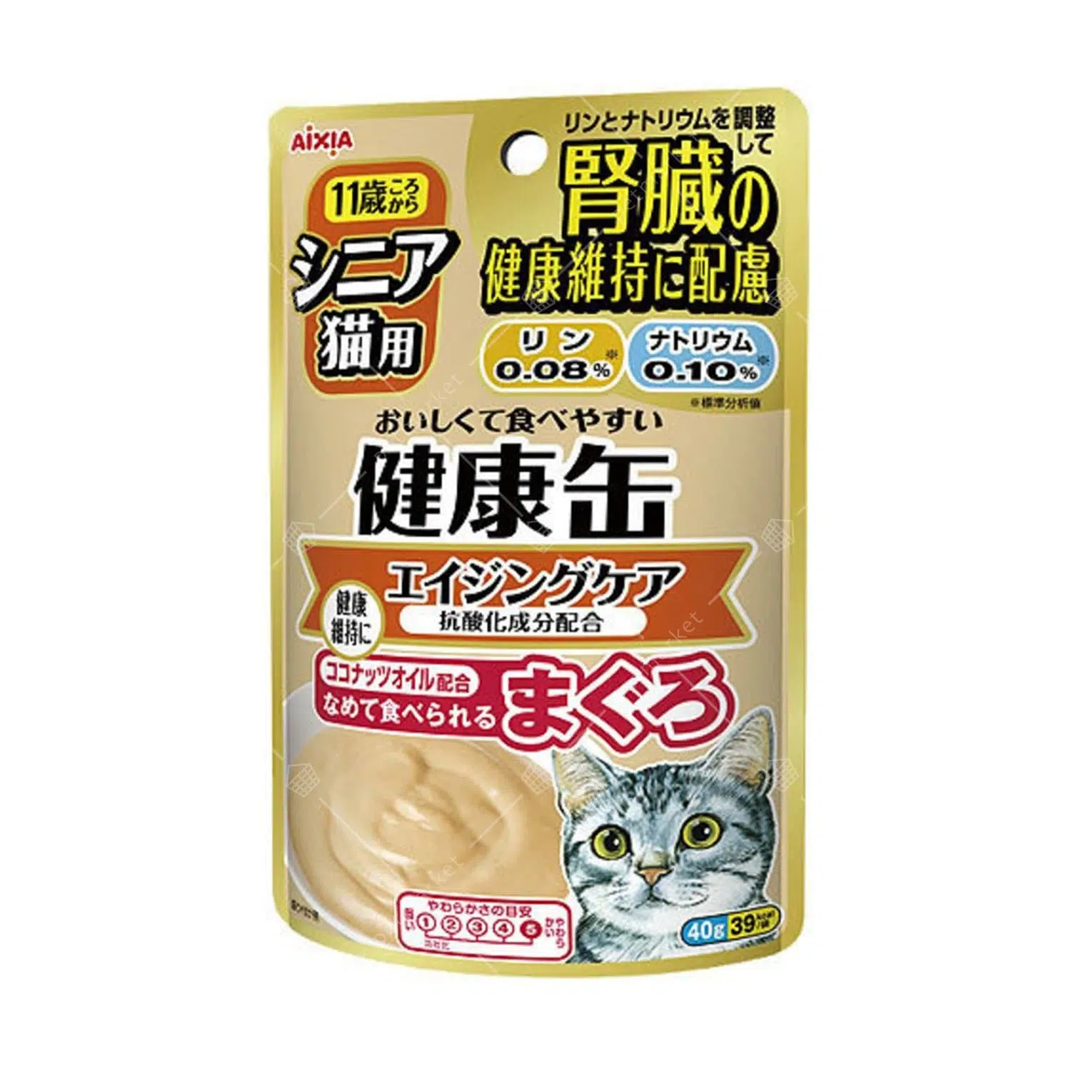 Aixia 愛喜雅 健康缶系列 – 11歲以上高齡貓腎臟機能護理濕包 40g [抗氧化] :肉質超細緻,以泥狀食用,更方便老貓的腸胃吸收消化以及舔食食用