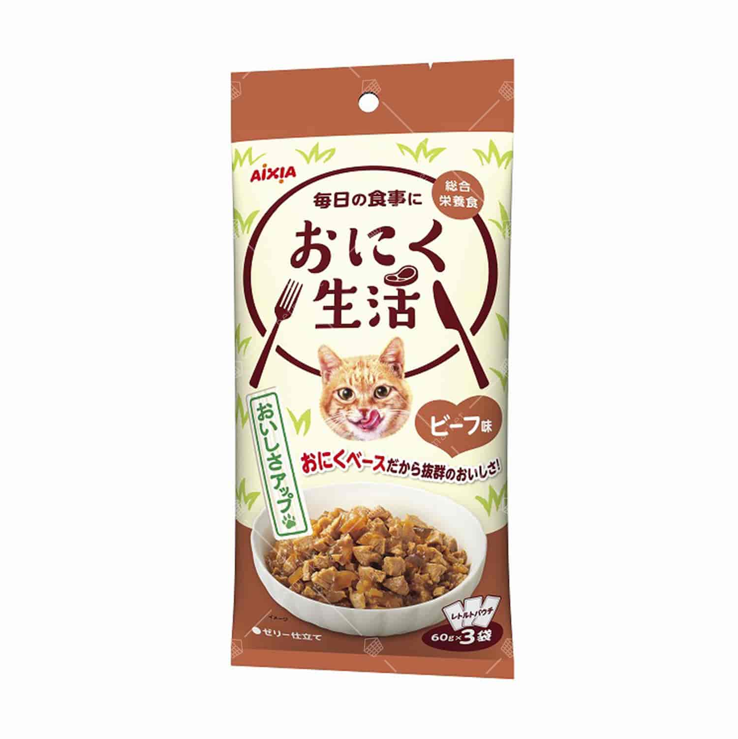 Aixia 愛喜雅 肉生活系列 – 総合栄養貓餐包 [60g x 3包裝][牛肉][ON-1]