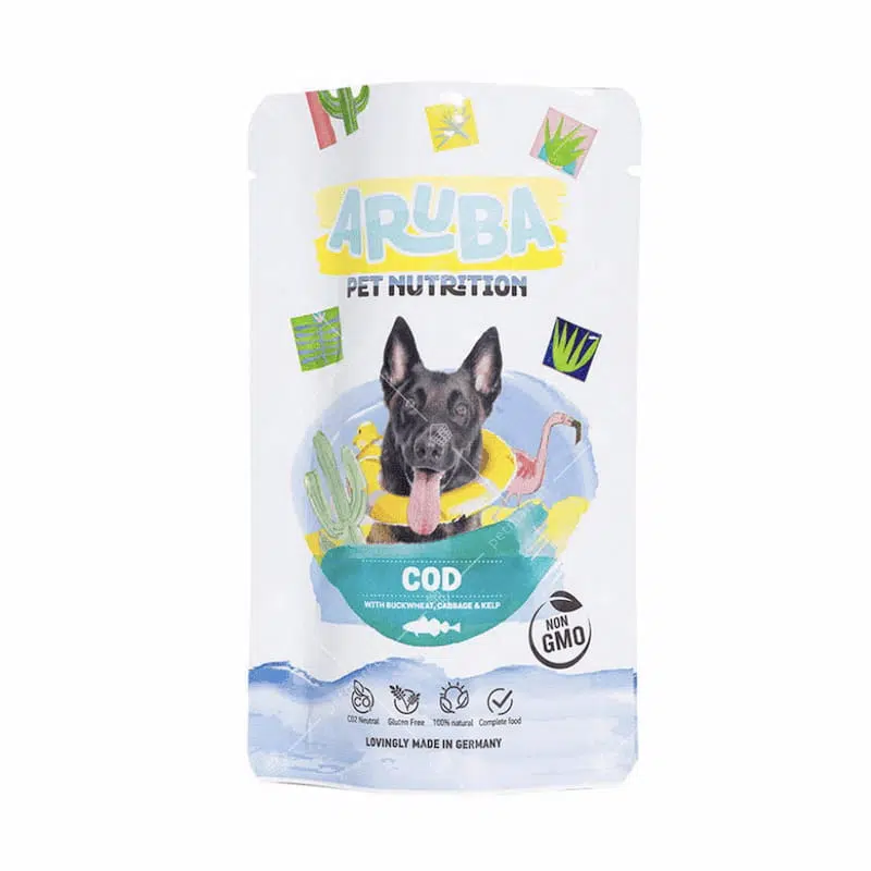 - ARUBA 的〝鱈魚配蕎麥,捲心菜和海藻〞鮮食包是結合了從北歐到南歐的的食材和美味的代表。產自大西洋冷水域的新鮮鱈魚,充滿著維生素B來支持您主子的新陳代謝、腦活動、神經細胞和紅血球的需要