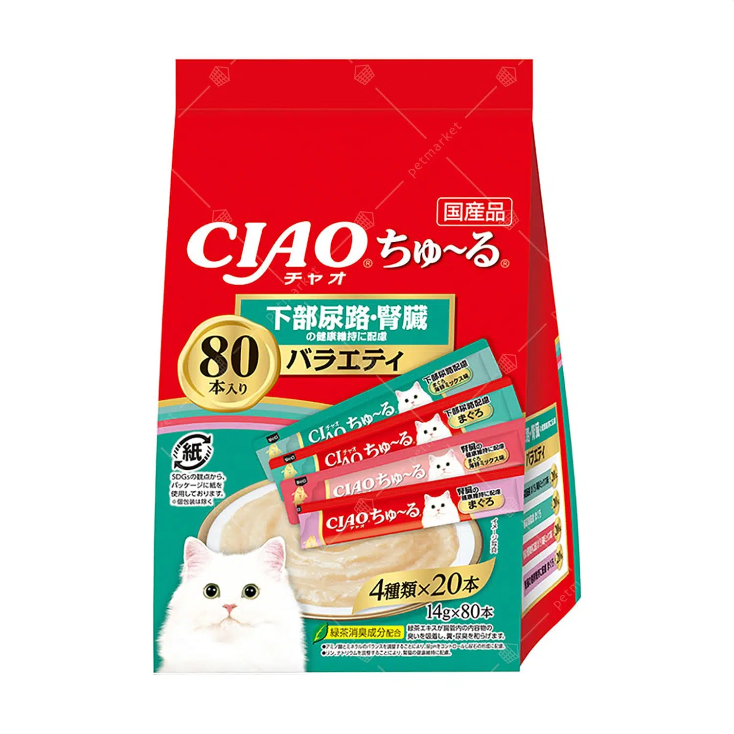 CIAO - Lower Urinary Tract. Kidney Healthy Cat Sauce [4 flavors 14g x 80 pcs] [SC-455]