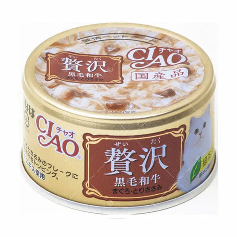 CIAO Tsunazawa- Kuroge Wagyu Beef, Tuna, and Chicken Fillet Canned Cat 80g [A-146]