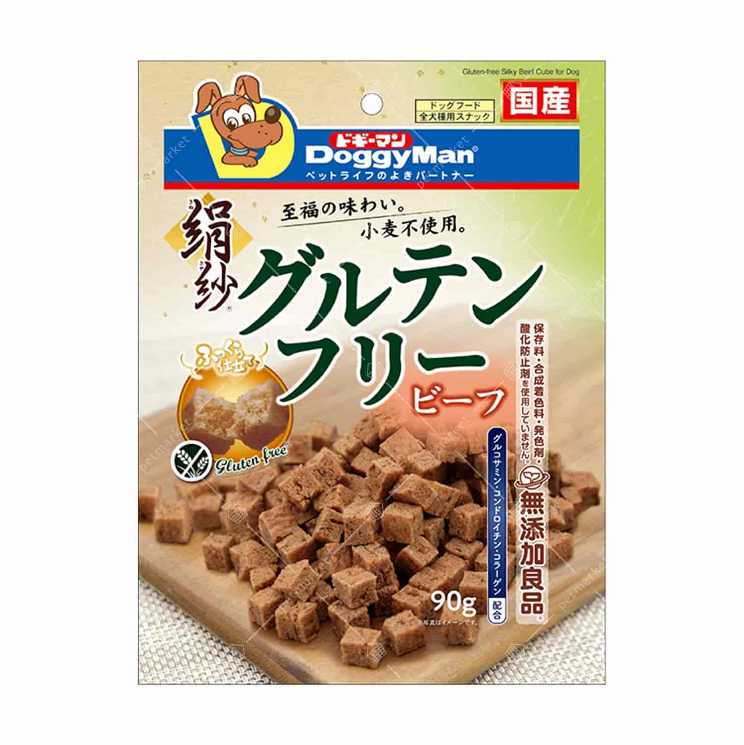 DoggyMan – 無麩質牛肉粒粒 採用優質牛肉、雞柳及雞肉製成,不含小麥成分,適合對麩質敏感的狗狗。零食質地柔軟細膩,特別適合超小型犬、小型犬及年長犬隻食用。不添加防腐劑、合成色素及人工抗氧化劑。以天然米粉取代小麥,並含有膠原蛋白肽、軟骨提取物及葡萄糖胺等成分,有助於維持愛犬的日常健康。不適合兩個月以下的幼犬食用。