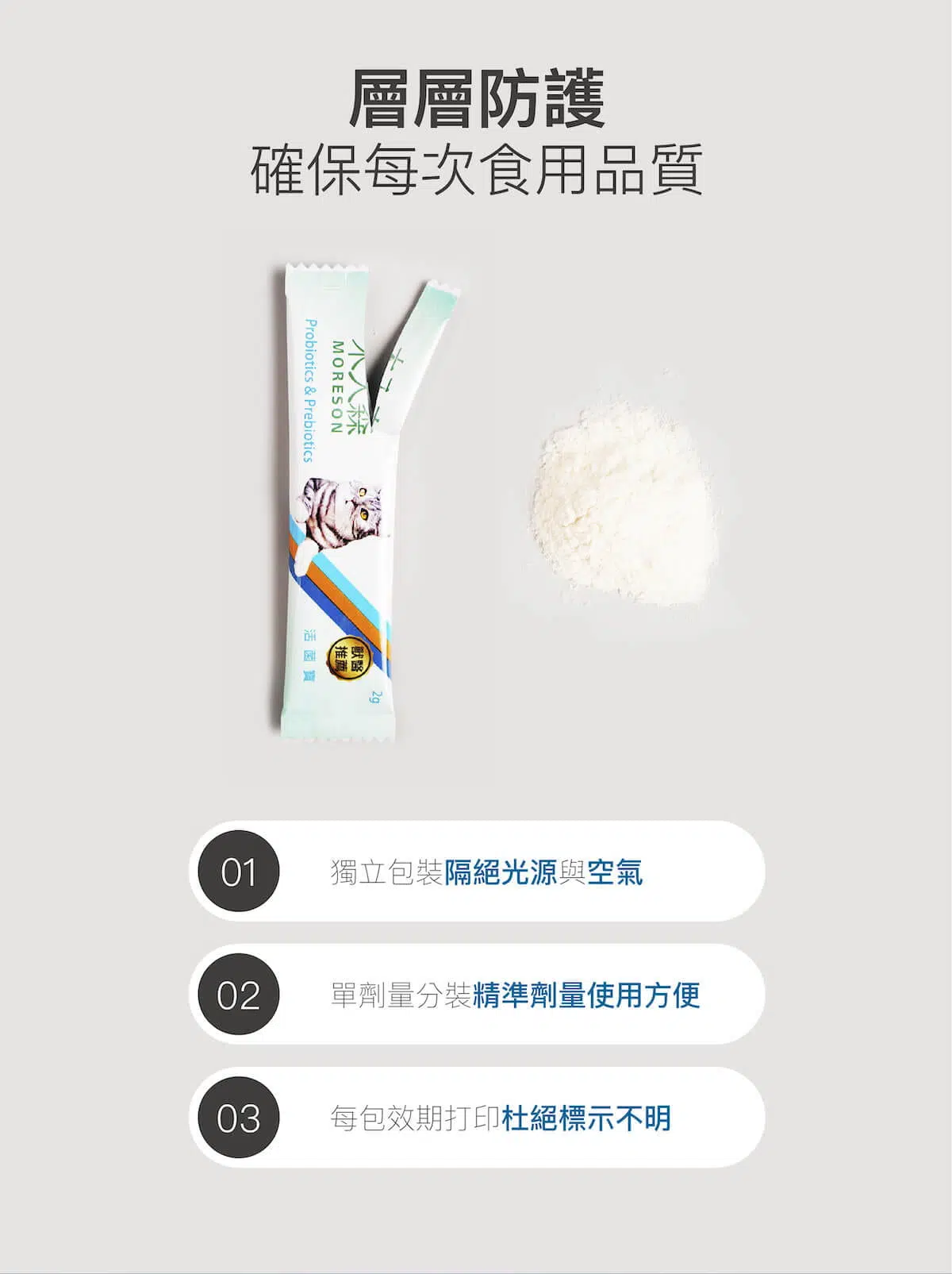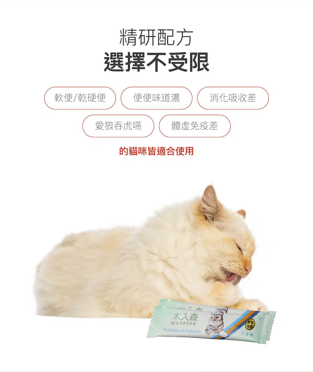 Moreson 木入森 – 活菌寶 [貓] – 有單獨包裝,可以阻隔空氣,讓每次吃排毛粉都吃第一次拆封,確保品質