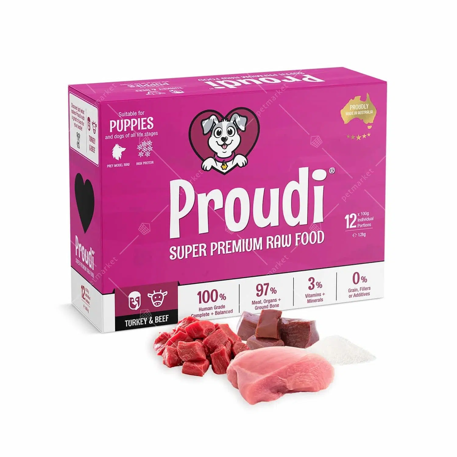 Proudi – 急凍生肉餅狗糧 100g x 12片 [Turkey & Beef 火雞、牛肉][幼犬配方]