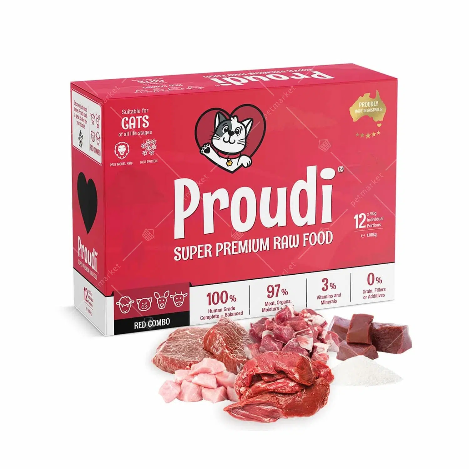 Proudi - Frozen Raw Meat Biscuit Cat Food 90g x 12pcs [Red Combo] [Kangaroo, Pork, Lamb, Beef Offal].