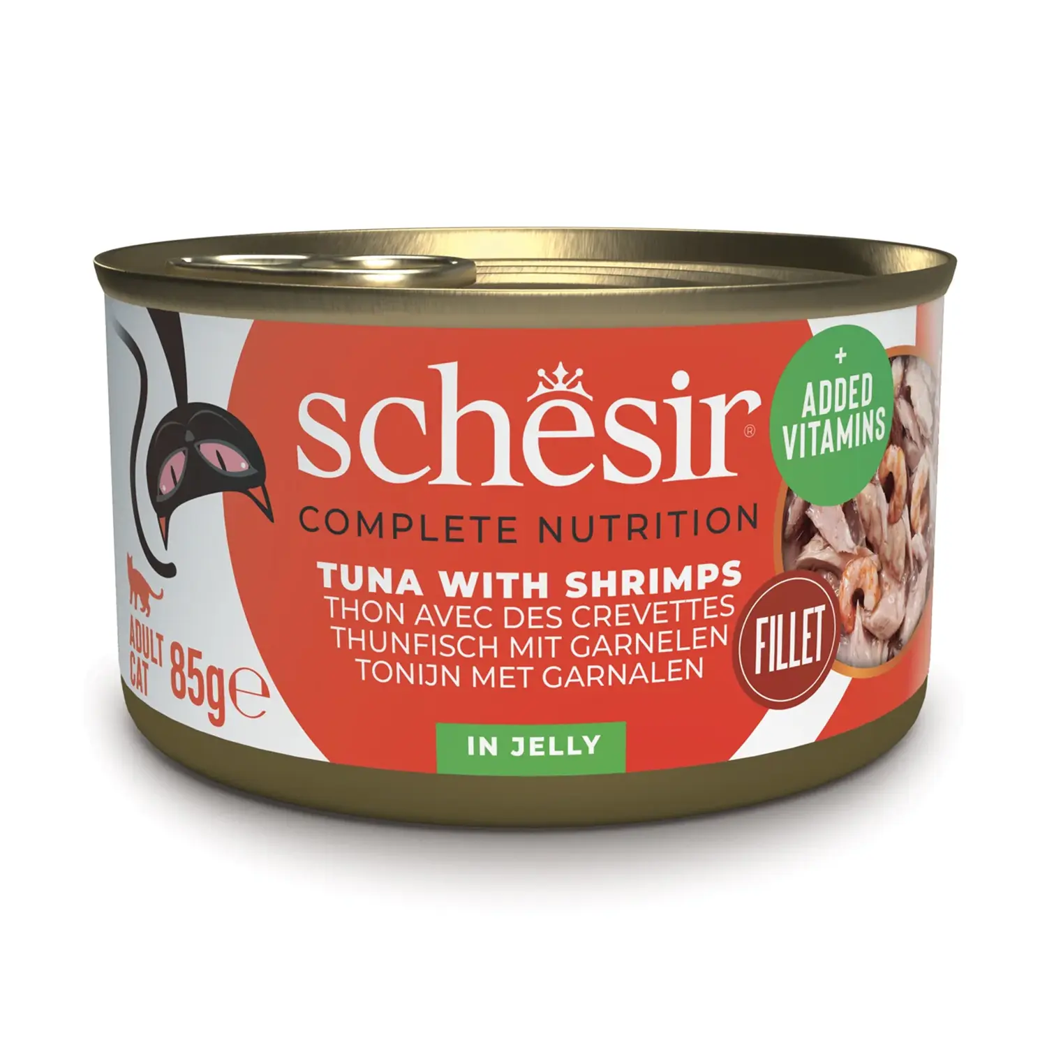 Schesir – 啫喱全齡主食貓罐頭 [吞拿魚、蝦] 85g