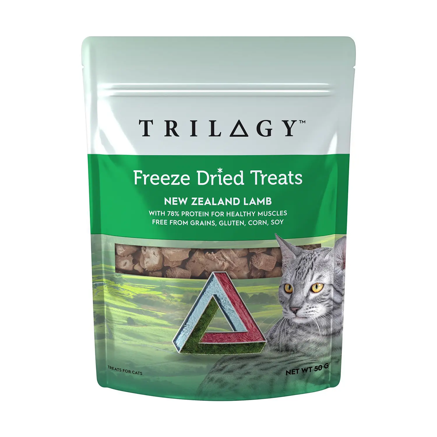 TRILOGY™ 紐西蘭羊肉凍乾貓小食,選用紐西蘭優質羊肉製作成凍乾羊肺粒(diced lamb lung),以低溫凍乾技術保留天然肉香與營養,口感香脆、嗜口性高。可作為獎勵小食直接餵食,亦可作為 Meal Topper 灑在主食上增香提食慾,為貓咪提供高蛋白的天然肉類補充。