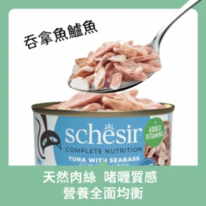 Schesir – 啫喱全齡主食貓罐頭 [吞拿魚、鱸魚] 85g