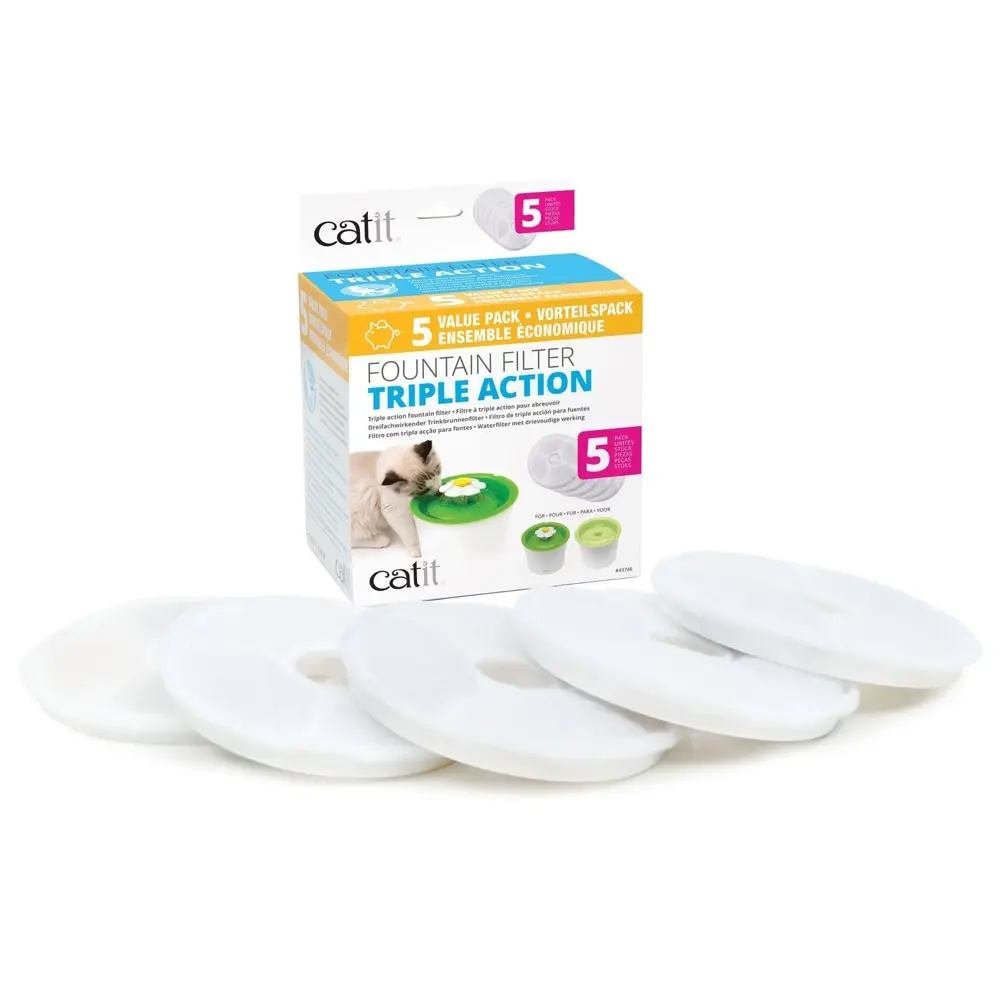 Catit – 三重過濾飲水機濾芯專為 Catit Flower Fountain 系列貓咪飲水機 而設,採用三重過濾系統,有效過濾雜質、異味及多餘礦物質,為貓咪提供更潔淨、清新及安全的飲用水。