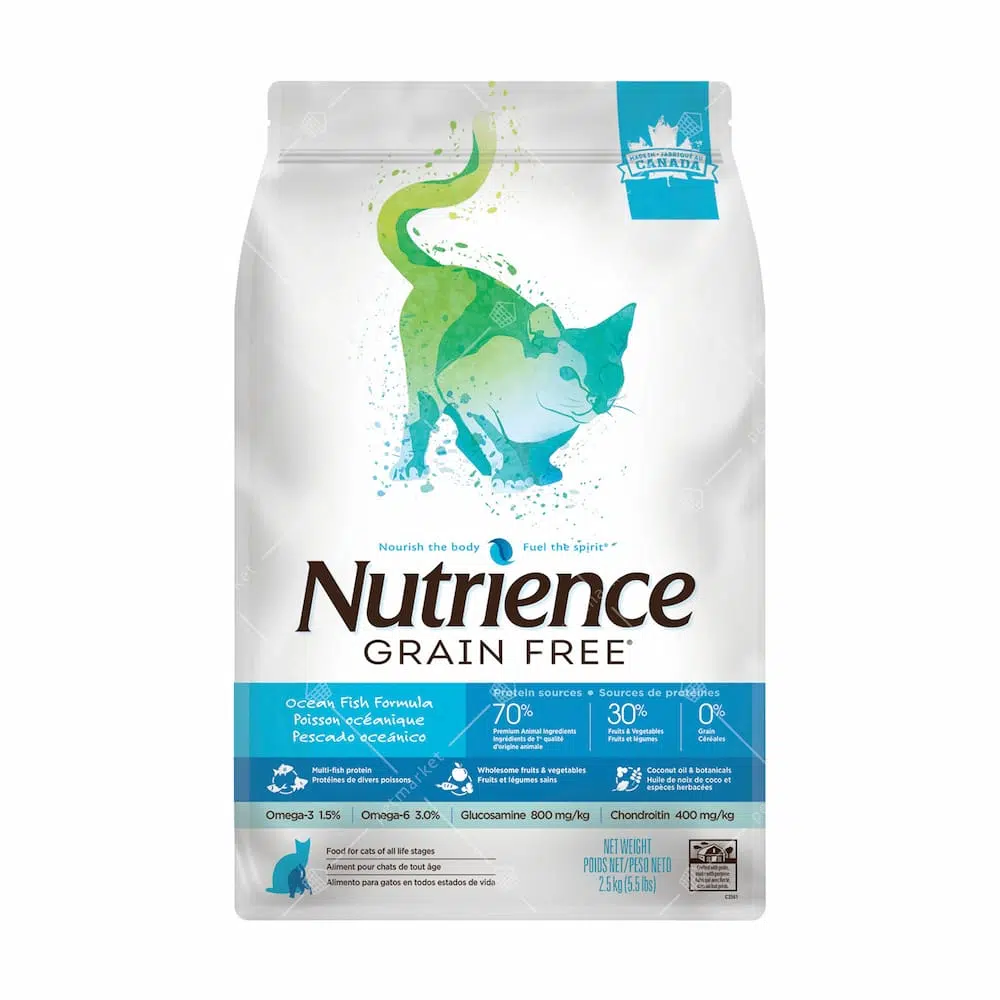 For pets sensitive to land-based proteins egg & poultry, Nutrience Grain Free Ocean Fish formula is also a balanced diet for the average cat. This gluten-free formula offers: