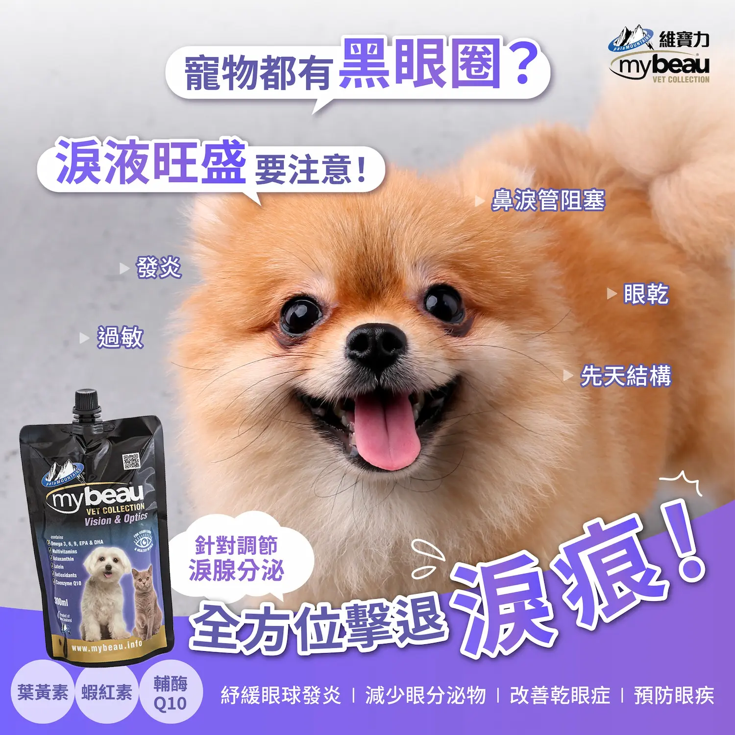 A:MyBeau 為營養保健品,不能代替任何獸醫處方藥物。對已有眼疾嘅狗狗及貓貓,可作輔助營養,減少氧化壓力,但如有異常情況一定要先睇獸醫。