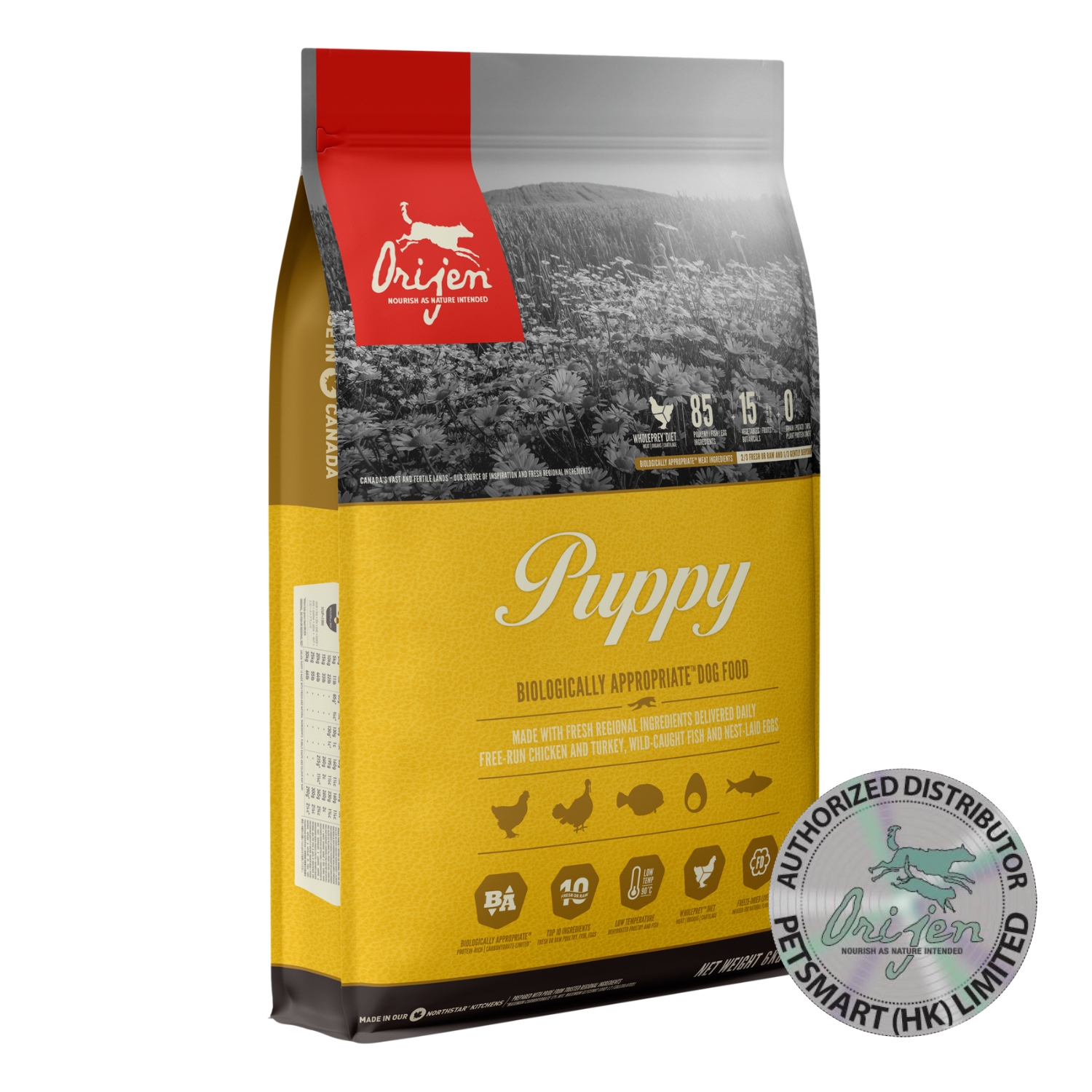 - ORIJEN含38%豐富蛋白質,17%低升醣的碳水化合物,根據幼犬的生理需求,完整滋養您的愛犬。