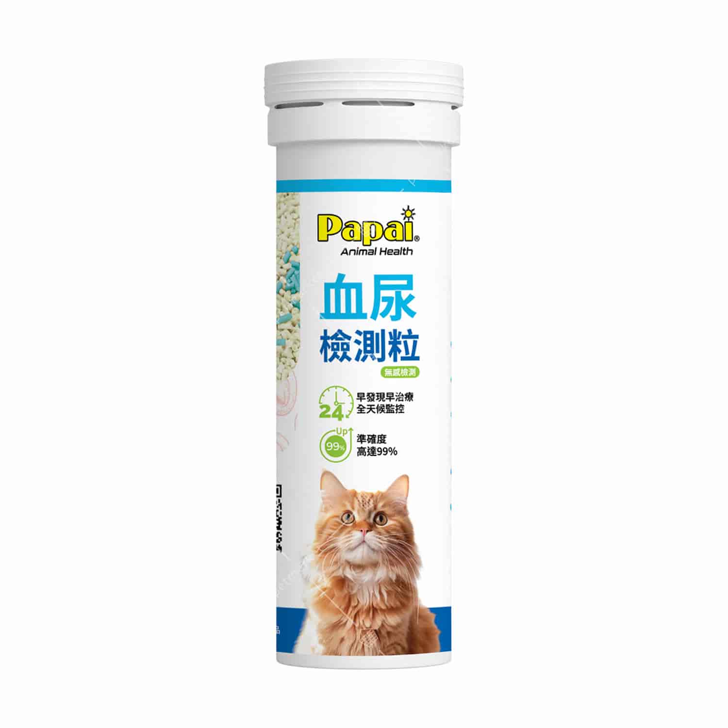 Papai – 血尿檢測顆粒 是一款專為貓狗設計的血尿檢測輔助工具,有助獸醫或寵物主人及早發現超過30多種潛在的出血相關疾病。本品適用於檢測貓狗排泄物、分泌物等是否含有血紅蛋白。檢測顆粒接觸血紅蛋白後會迅速變為藍色,顏色可維持最少七天或以上。若顆粒接觸液體後呈現藍色變化,建議立即攜帶寵物諮詢獸醫進行專業診斷。使用時,請按寵物種類均勻撒於貓砂表面或沾有尿液的尿墊上。本品僅供外用檢測,嚴禁貓狗食用。
