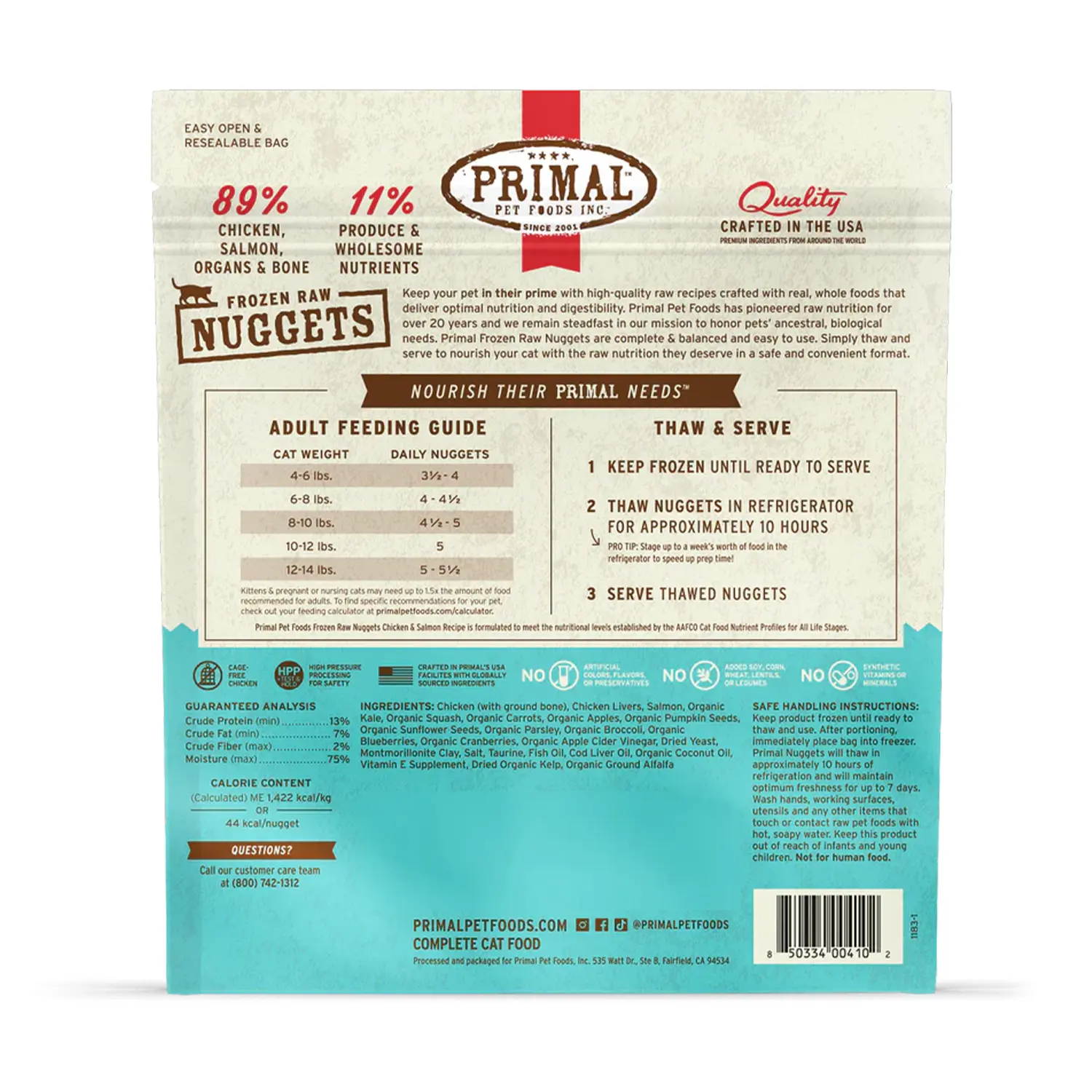 Primal – Nuggets 急凍鮮肉磚 (走地雞、野生三文魚配方)(貓用) 3磅裝