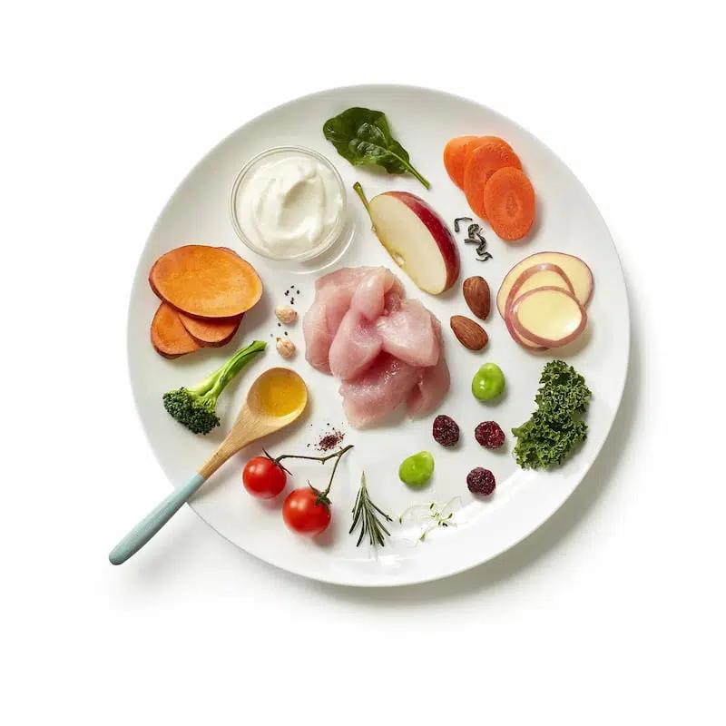 雞肉、原型雞肉凍乾、蠶豆、鷹嘴豆、雞脂(混合生育酚和迷迭香萃取物)、雞汁、馬鈴薯、甜菜漿、葵花籽油、海鹽、亞麻籽油、菊苣纖維、魚油、椰子油、雞蛋、牛磺酸、DL蛋氨酸、絲蘭萃取物、鴯鶓油、胡蘿蔔、優格、菠菜、花椰菜、羽衣甘藍、紫花苜蓿、蘋果、番茄、奇亞籽、海帶、甜薯、薑黃、杏仁粉、歐芹、鹽膚木、綠茶萃取物、藍莓萃取物、蔓越莓萃取物。營養添加物 : 維他命和礦物質(包括鈣、磷、鉀、鎂、鐵、銅、錳、鋅、碘、硒、維他命 A、C、D3、E、B1、B2、B3、B5、B6、B9、B12、膽鹼)
