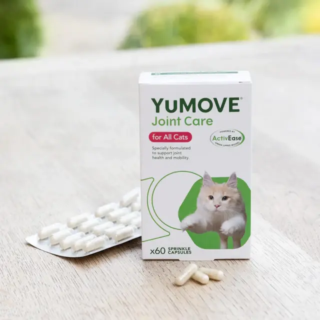 YuMOVE 健貓關節寶為英國 No.1 獸醫推薦關節補充品牌,專為所有年齡貓咪設計,採用三重作用配方,有效舒緩僵硬關節、支持關節結構及維持靈活活動力。無磷配方,溫和安全,特別適合需要長期關節保養的貓咪。